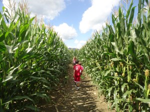 At the other end of the path, we tried out the local corn maze (realizing five minutes into it that it’s no fun to be lost in a maze). But we enjoyed talking with the granddaughter of the farmer who owns all that corn, which he uses to feed his dairy cows, who provide milk to the local Cabot Creamery to make cheese, which we ate on our numerous pizzas. Circle closed.