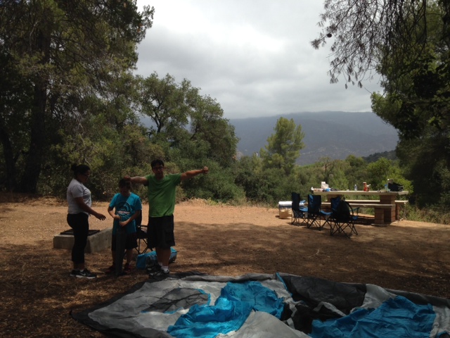 Then…boredom set in. We played musical chairs, with one of us singing while the other four ran in circles around camp chairs. We read. “It feels like the longest day ever,” Maria said. I didn’t disagree. Christopher said, “Let’s go get ice cream,” and our spirits lifted. We drove the short distance to town and found Ojai Ice Cream across from Libbey Park, where we would spend the next few hours playing on a jungle gym designed for 5-12 year olds, and then playing “Avioncito,” an advanced version of hopscotch Maria taught us.