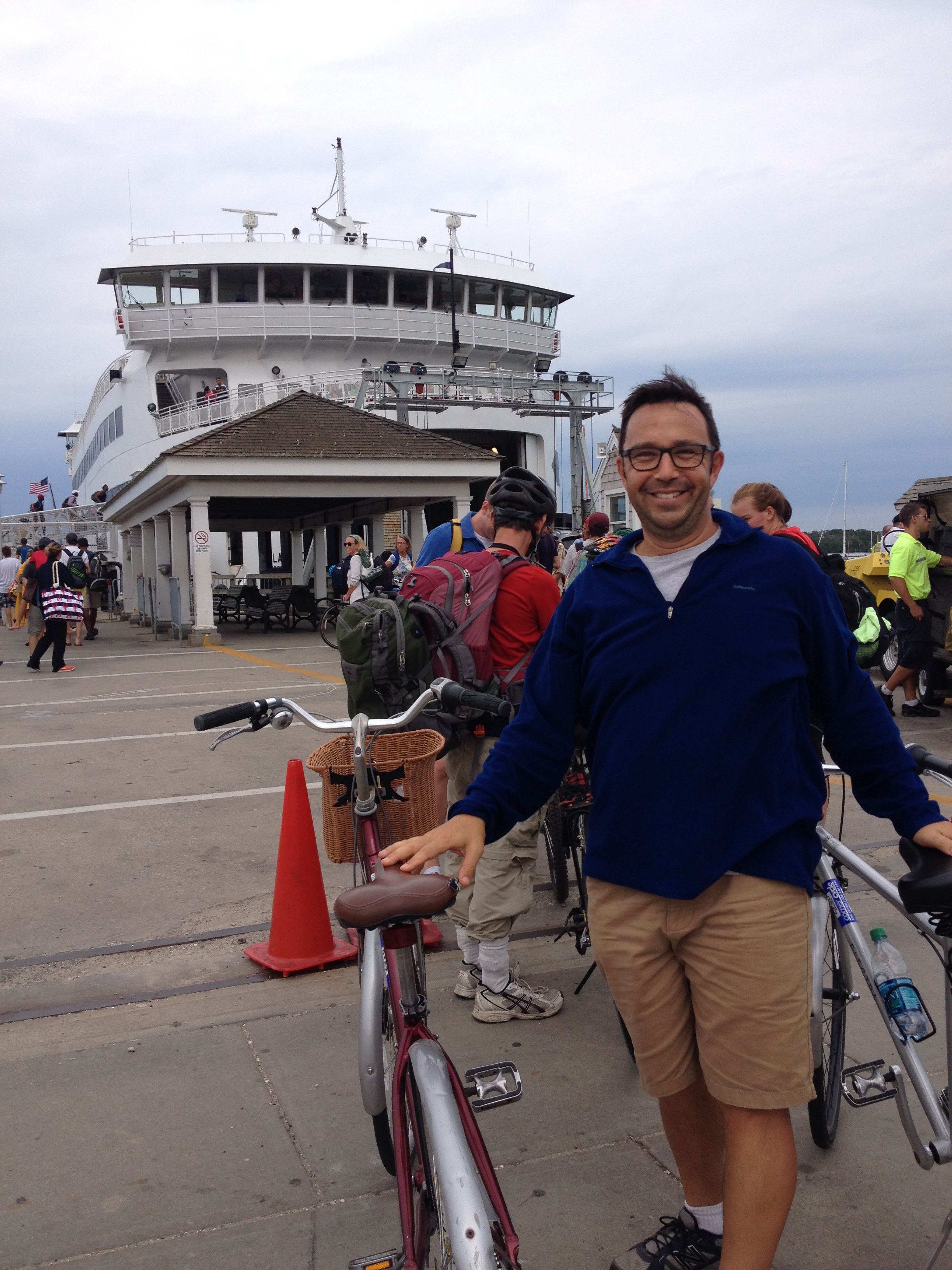 Then it was time to return. We rode seven miles to the town of Vineyard Haven, and said hello to the good people of Bunch of Grapes Bookstore before rushing to the dock for the five o’clock ferry.